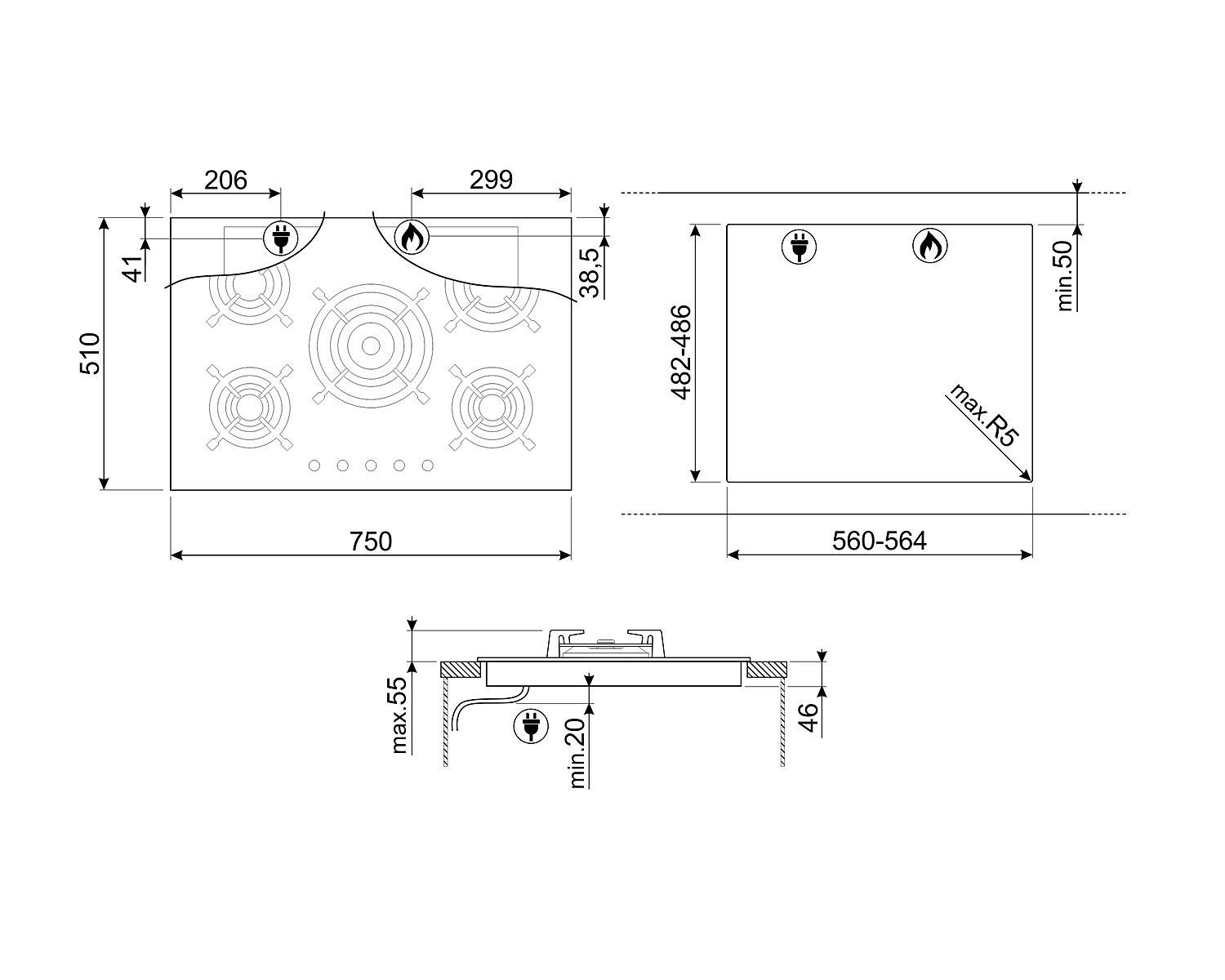 Варильна поверхня Smeg PV 675CNR